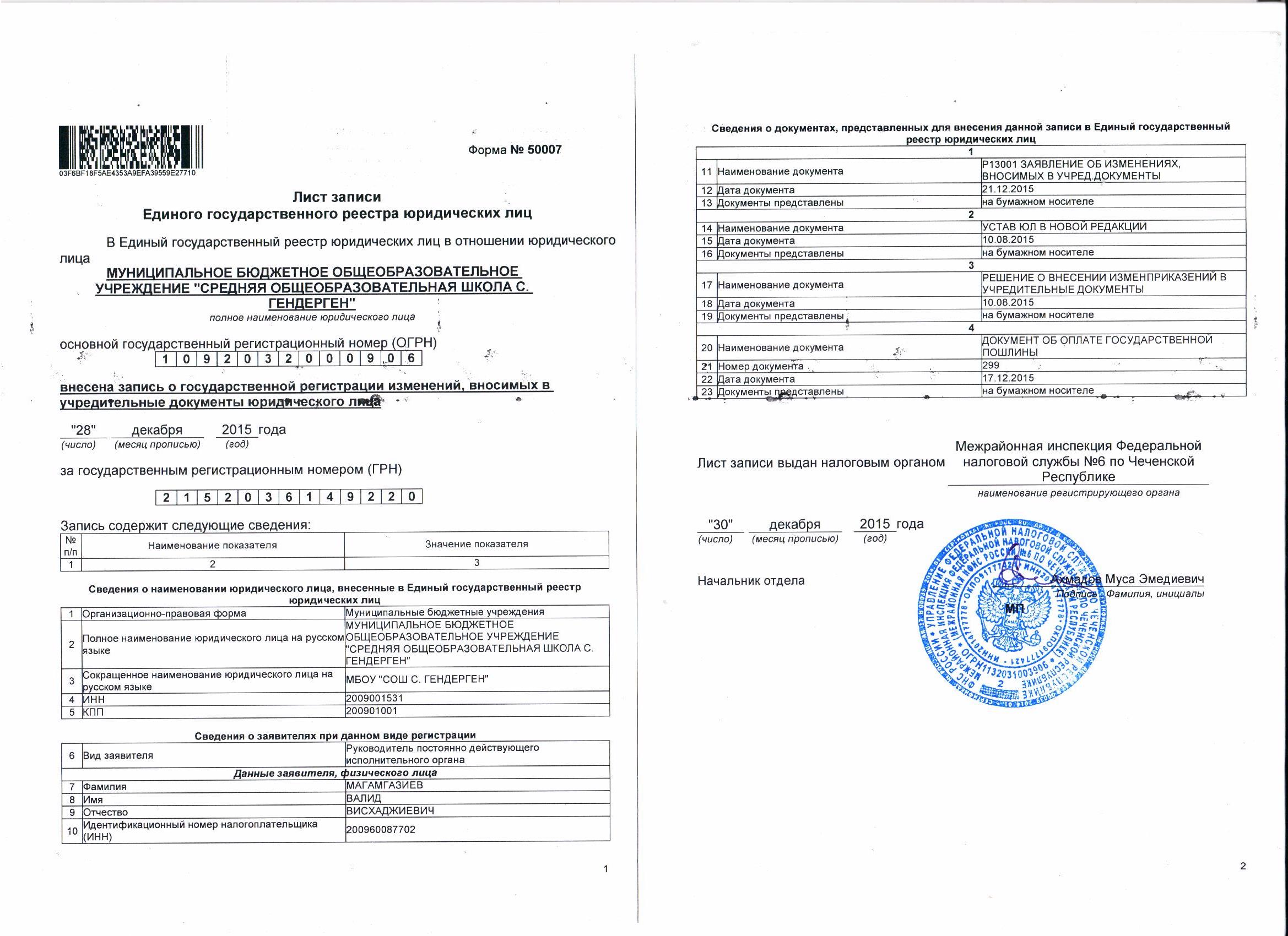 муниципального района Чеченской Республики
