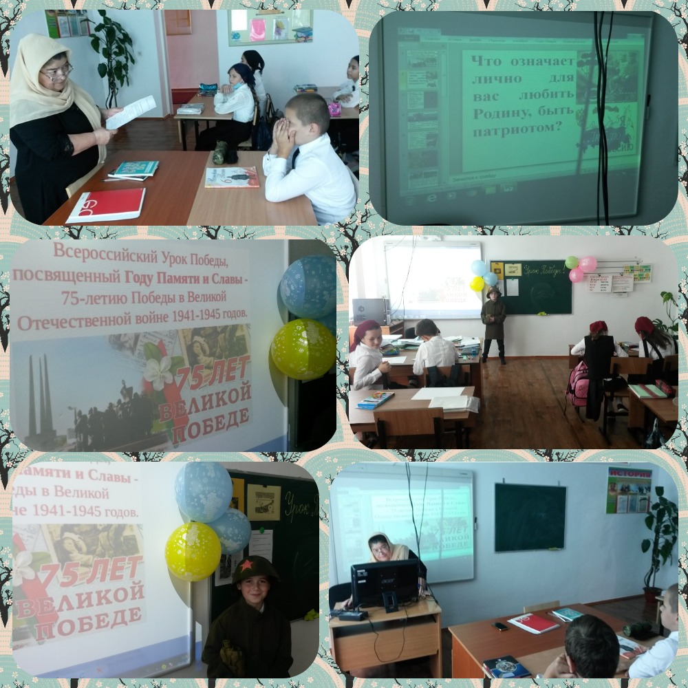 03.09.2020На основании письма Министерства образования и науки Чеченской Республики и методических рекомендаций по проведению Международного Урока Победы в МБОУ «СОШ с. Гендерген» учитель истории Ибрагимова М.М. провела Урок Победы, посвящённый 75 – летию Победы в ВОВ.