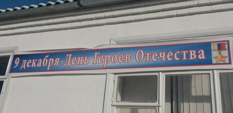 - с 29 ноября 2021 года выполнено тематическое оформление фасада здания школы баннером «9 – декабря День Героев Отечества»;