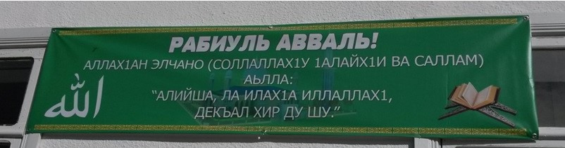 - 16 октября 2021 года выполнено тематическое оформление здания школы, приуроченное ко Дню рождения Пророка Мухаммада (Да благословит Его Аллах и приветствует) – выставлен баннер: РАБИУЛЬ АВВАЛЬ! Аллах1ан элчано (Соллаллах1у 1алайх1и ва салам) аьлла: «Алийша, Ла Илах1а Иллаллах1, декъал хир ду шу»;