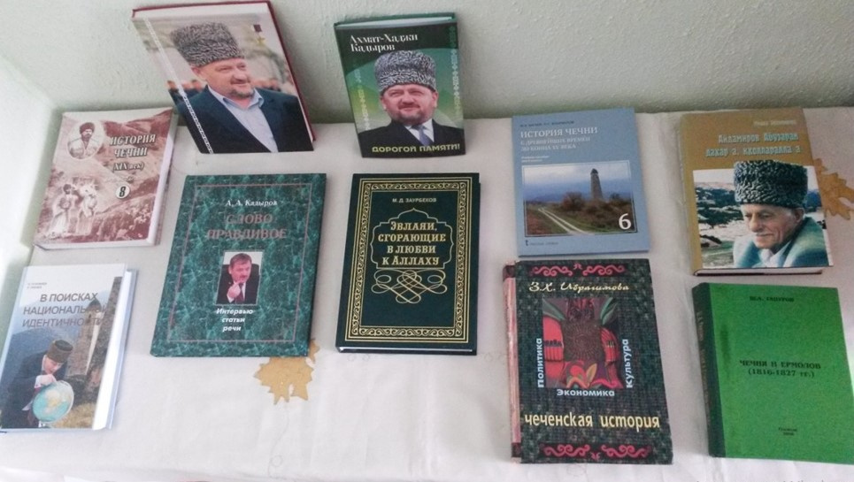 - с 11 по 14 апреля 2022 г. проведена тематическая выставка в школьной библиотеке на тему: «История Чеченской Республики» (библиотекарь);