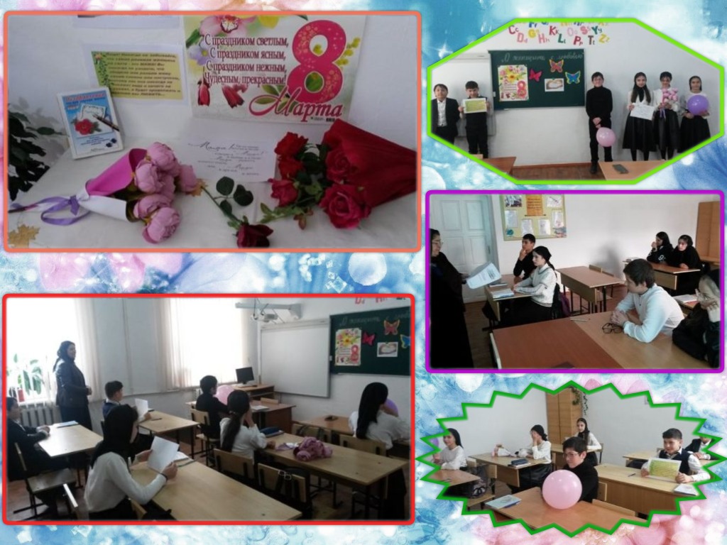 - с 2 марта по 07 марта 2023 года для учащихся 1-11 классов проведены беседы и классные часы на темы: «Нет тебя прекрасней!»; «О женщине с любовью»;