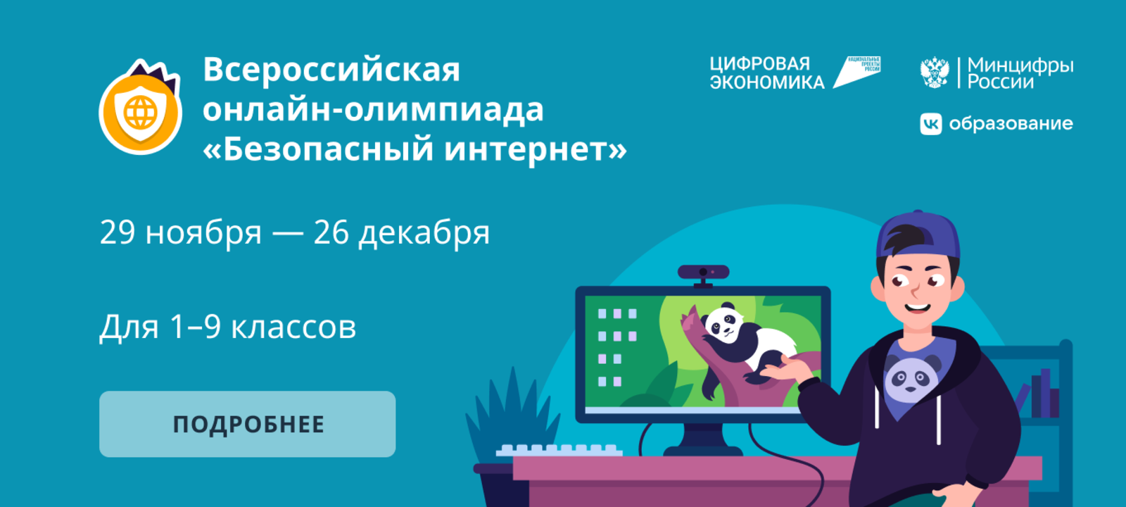 Олимпиада направлена на повышение цифровой грамотности учеников и проводится в онлайн-формате, школьникам достаточно иметь компьютер или планшет с современным браузером и выходом в интернет. Участие бесплатное.