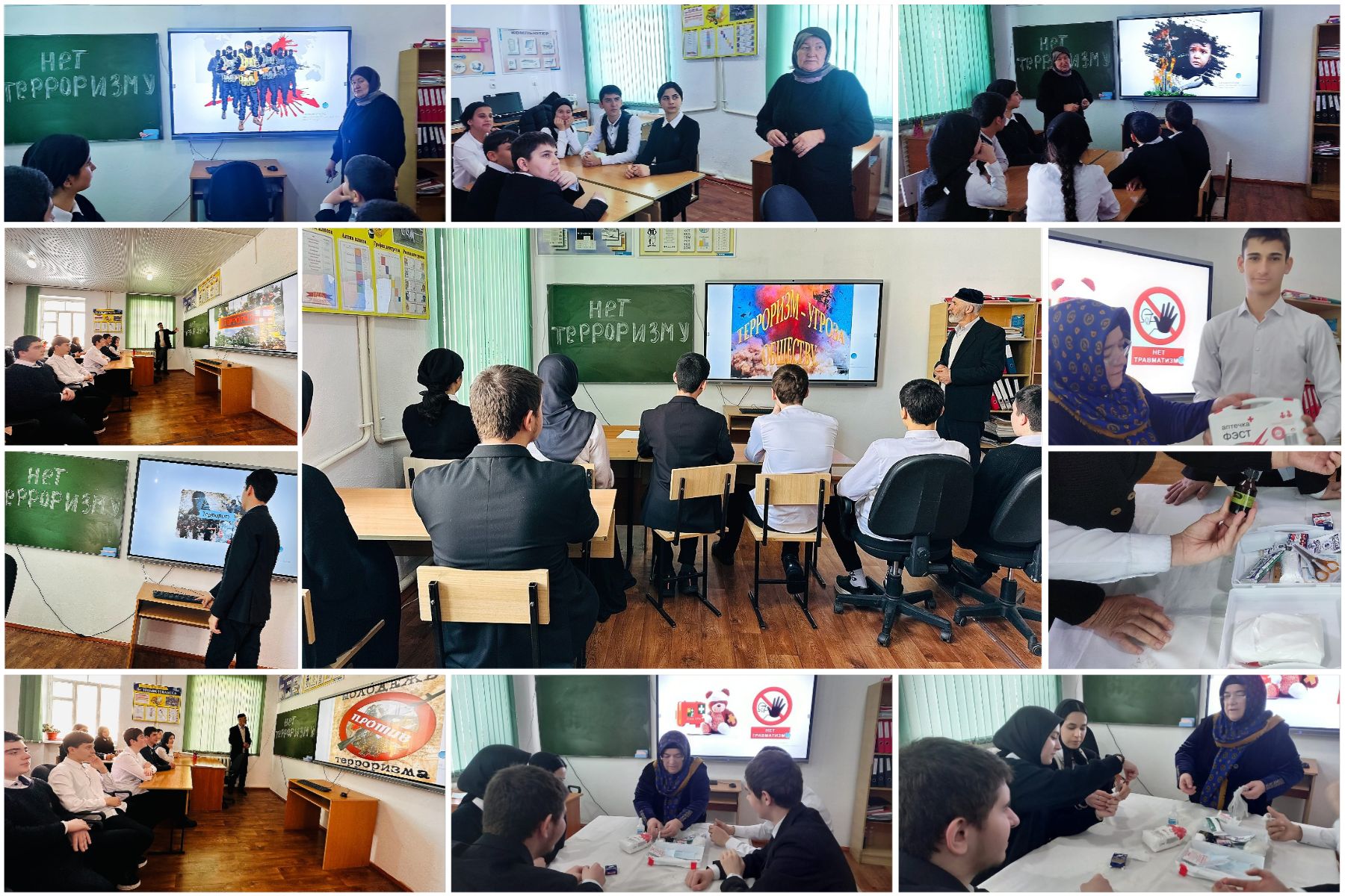 20.01.2025 года в МБОУ "СОШ с. Гендерген" классный руководитель 10 класса и учитель истории Ибрагимова Марьям профилактическую и разъяснительную беседу на тему: "Нет терроризму". Ибрагимова Марьям рассказала и показала учащимся, как оказать первую медицинскую помощь при ранениях, в случаях террористического акта.
