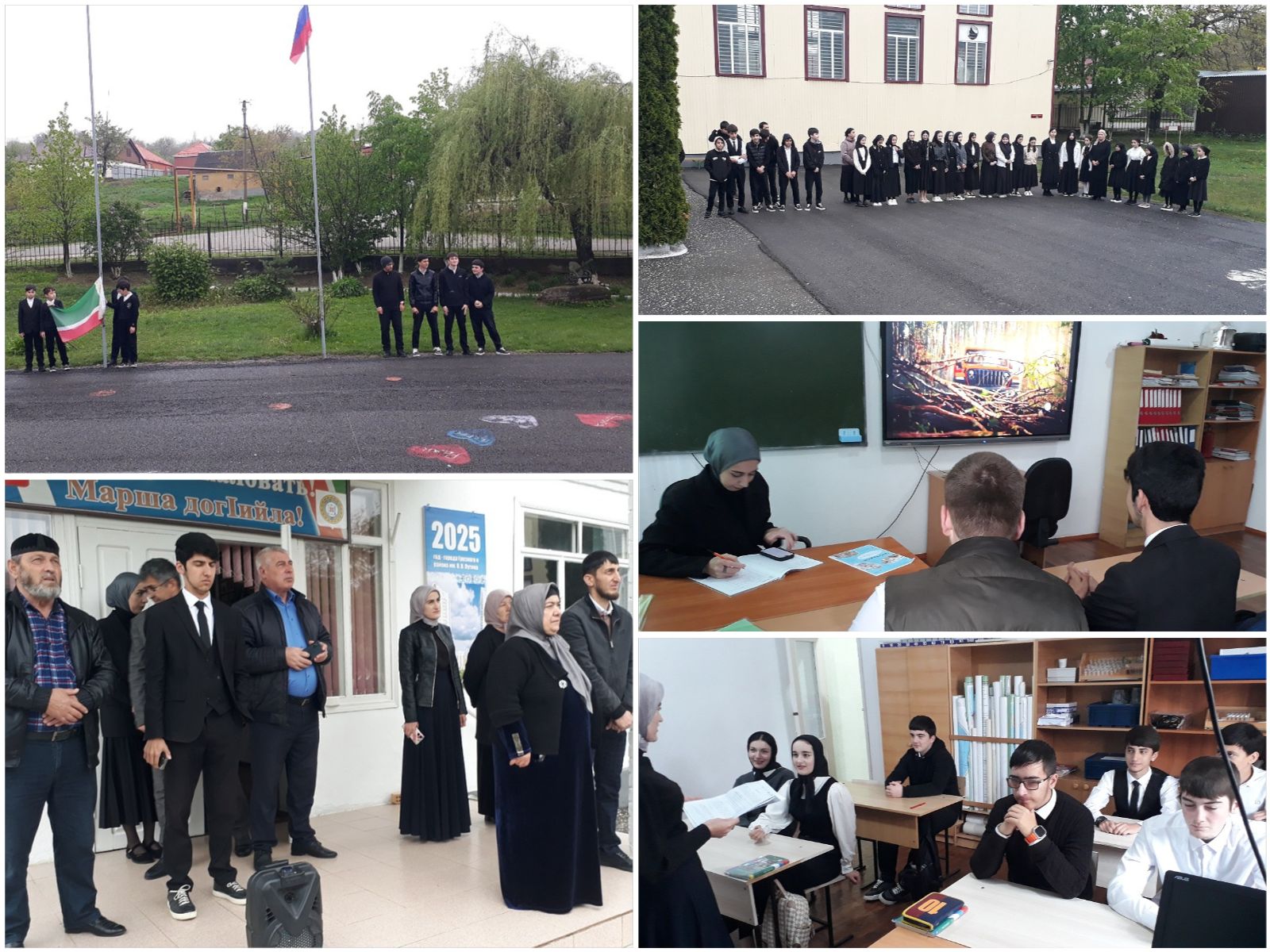 28.04.2025 г. в МБОУ "СОШ с. Гендерген" начался с торжественной линейки, с поднятием флагов Российской Федерации и Чеченской Республики.