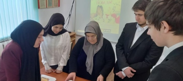 24.04.2025 г. в МБОУ «СОШ с. Гендерген» учитель истории Ибрагимова Марьям провела акцию для учащихся 10 класса на тему: «Читаем книги о войне», охват – 6 чел.