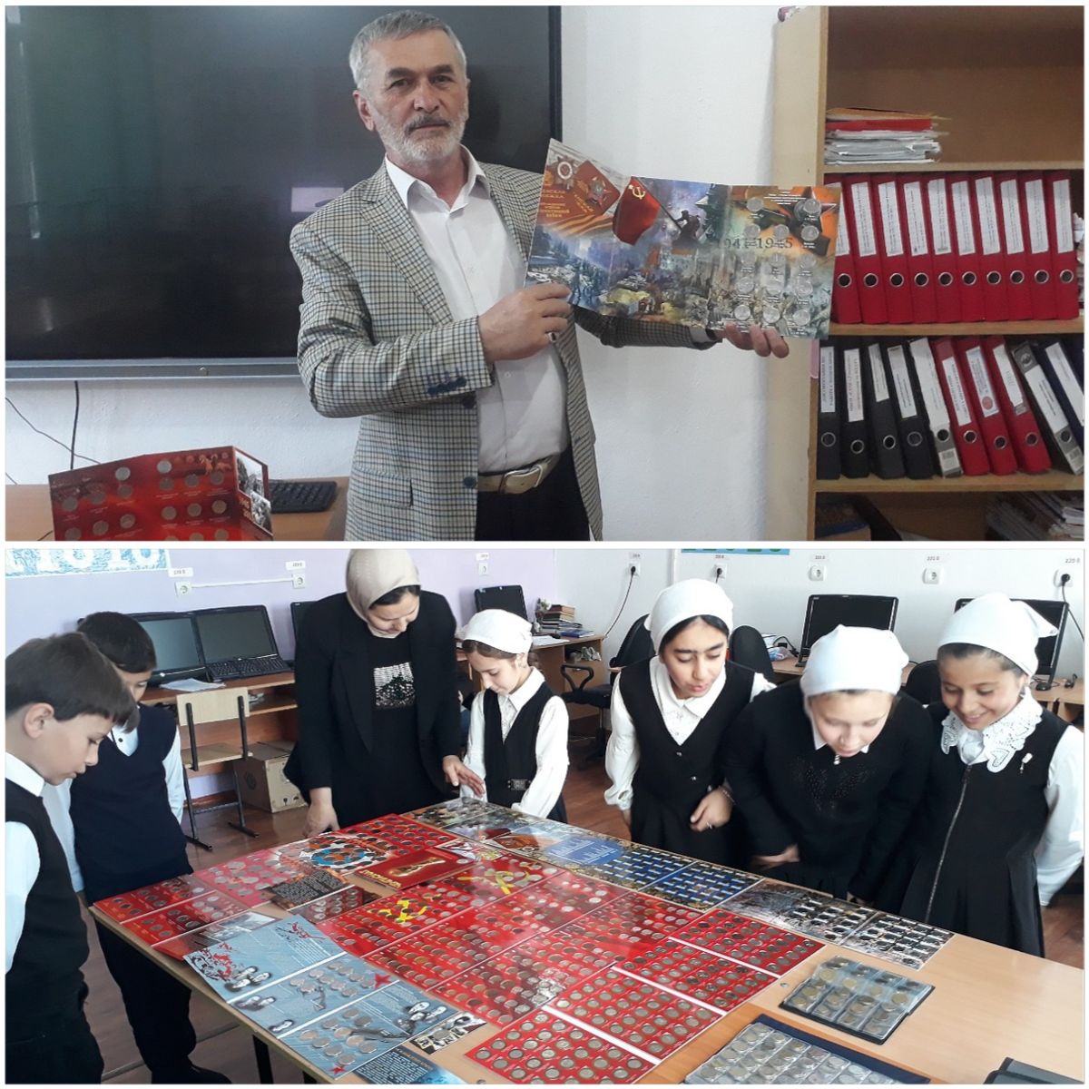 Сегодня, 7 мая 2025 года в МБОУ «СОШ с. Гендерген» состоялась выставка памятных монет, посвящённая Дню Победы в ВОВ под девизом «Монета – это история, отчеканенная в металле». Зам. директора школы по ВР - Бетираев А.А. предоставил детям, возможность поближе познакомится серией монет: «Освобождение Крыма»; «Конструкторы оружия ВОВ»; «Города – герои»; «Города – столицы государств, освобождённые советскими войсками от немецко – фашистских захватчиков»; серия монет «70‑летие Победы в Великой Отечественной войне 1941–1945 годов» … Тематическая выставка монет помогает не только популяризировать произведения монетного искусства, но и сохранять память о великом подвиге нашего народа в Великой Отечественной войне. Выставка позволяет детально рассмотреть изображение монеты - исторического факта войны, которому она посвящена. Очень яркое впечатление осталось у детей от увиденного, услышанного, прочувствованного.