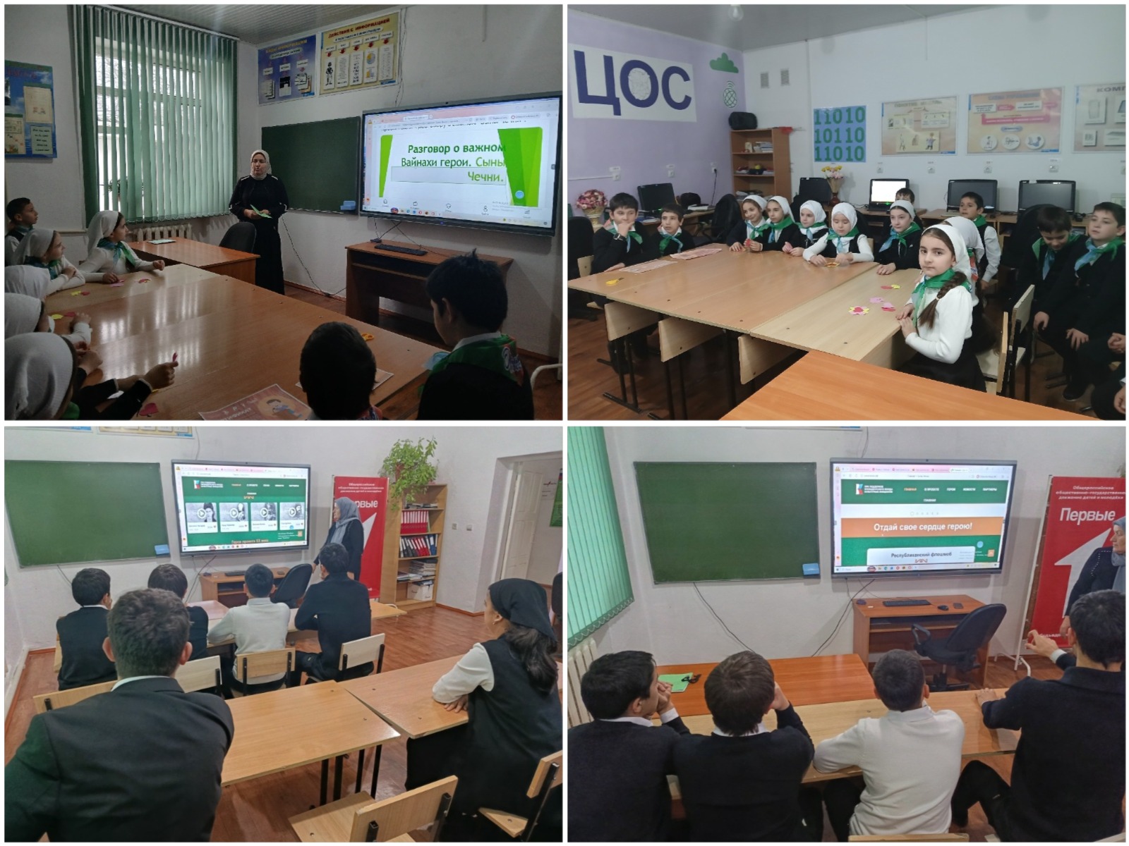 08.12.2025 г. классные руководители провели урок мужества на внеурочном занятии курса «Разговоры о важном» на тему: «Вайнахи герои. Сыны Чечни», охват – 26 чел.