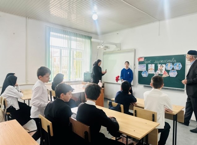 03.02.2026 года учитель по ОБЗР – Алиханов М.А. провёл для учащихся 6 класса Урок мужества на тему: «Герои СВО - защитники России!», охват-14 чел.